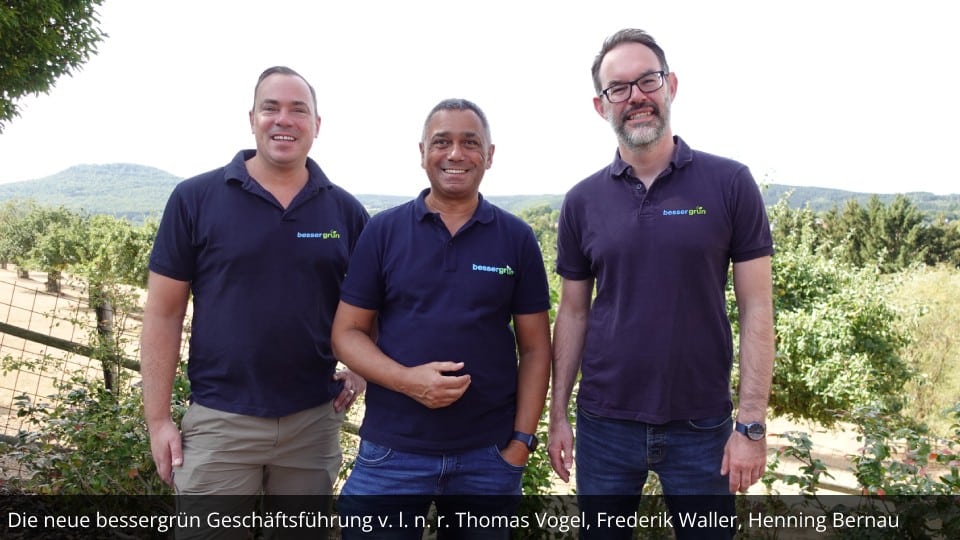 Daniel Feddermann ist schon seit langem ein Fan von bessergrün und sieht der gemeinsamen Zeit mit Freude entgegen: „Das Thema „bessergrün“ lag mir immer schon sehr am Herzen. Umso mehr freue ich mich an der weiteren Entwicklung von bessergrün gemeinsam mit den Geschäftsführerkollegen zu feilen.“